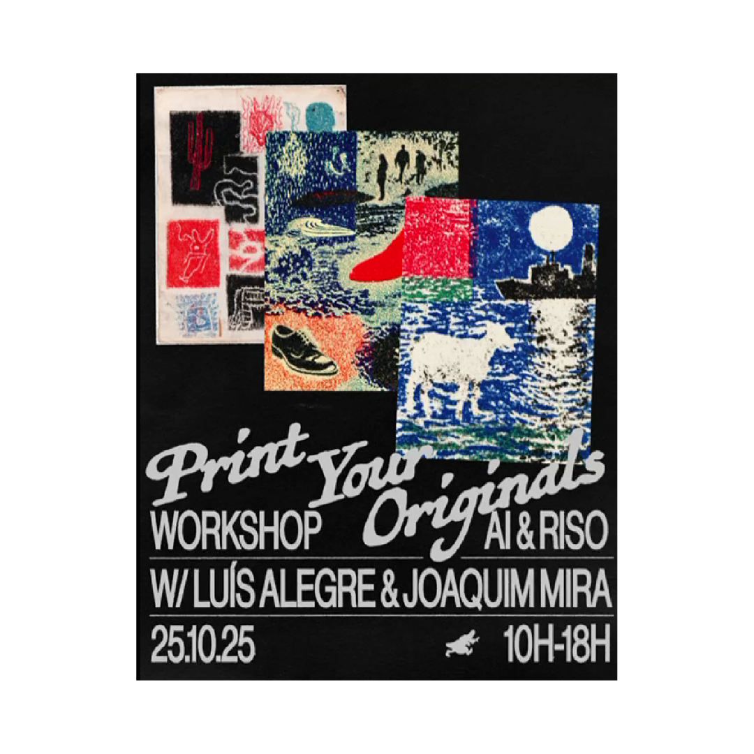 A creative workshop by Stolen Books where AI and risography meet to play with styles, glitches, and imperfect copies. In this workshop, we will explore the possibilities of using AI to generate new images and risography as a space for graphic experimentation. With Luís Alegre and Joaquim Mira.