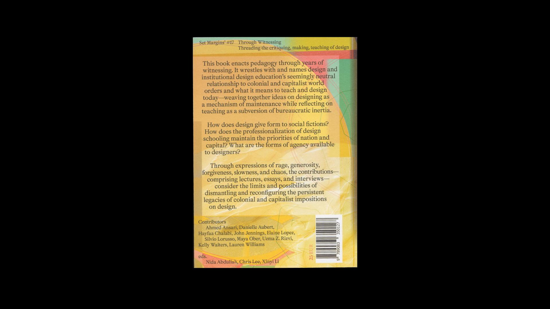 This book names and wrestles with design and institutional design education’s pseudo-neutral relationship with colonial capitalist world orders and what it means to teach and design today. It slowly weaves together ideas on designing as a mechanism of maintenance and teaching against bureaucratic inertia. How does design give form to social fictions? How does design and the professionalization of design schooling maintain the priorities of nations and capital? Engaging in pedagogical expressions of rage, generosity, forgiveness, slowness, and chaos; contributions of lecture, essay and interview reflect on the weight of being, the possibilities and sometimes impossibilities towards un-doing and un-maintaining the enduring legacies of colonial powers.