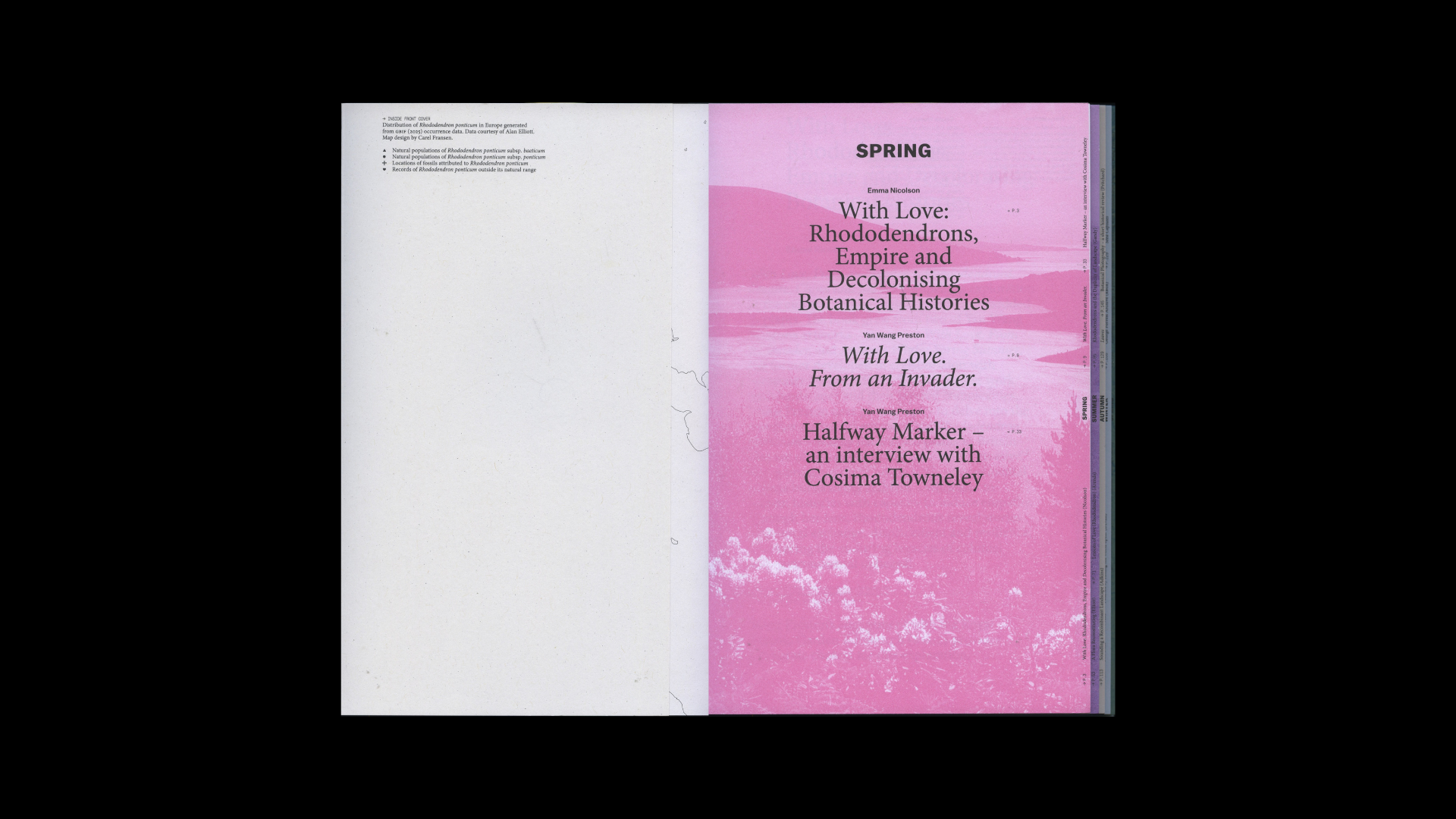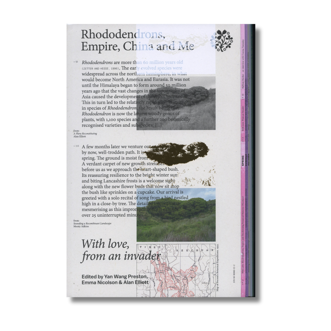 ‘With Love. From an Invader. – Rhododendrons, Empire, China and Me’ is an intensive field study. Every other day for a year, Yan Wang Preston (CN/GB) went to a particular love-heart-shaped ‘Rhododendron ponticum’ shrub and photographed it. In the process she also found a thriving ecology with the rhododendrons as the key stone species. British rhododendrons are all introduced plants, brought from southern Europe and East Asia for science and horticulture. Although still common and a much-loved sight in most British gardens, it is often labelled as non-native invasive. The contested perceptions of rhododendrons suggest that politics is at play within the apparent objectivity of science. The book is a love letter from a non-native species to the cosmopolitan ecology of contemporary Britain.